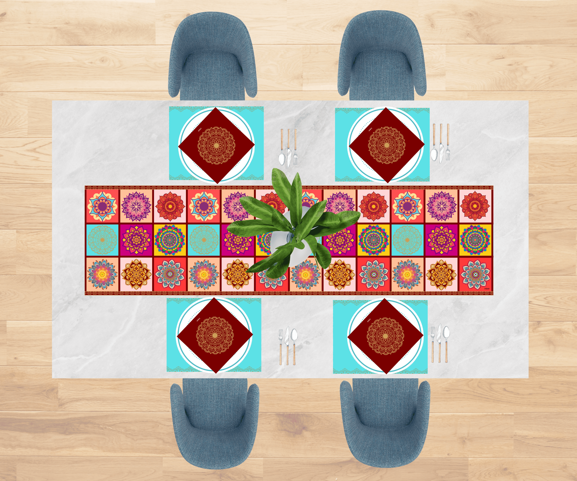 Inspired by the timeless beauty of mandalas, this table linen set blends vibrant colors and intricate artistry to create a sense of balance, joy, and celebration. Perfect for gatherings or everyday dining, it transforms your table into a warm, inviting space filled with harmony and cultural charm