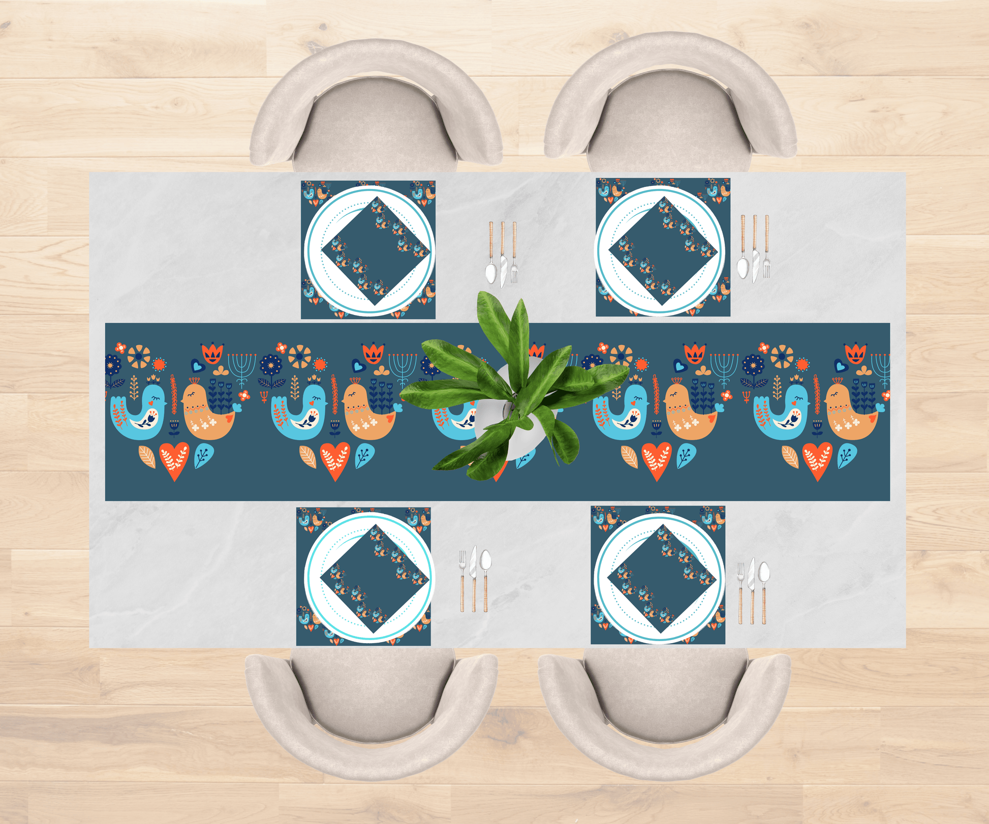 1 Table Runner: A central accent piece with a seamless bird pattern 13x54 inch